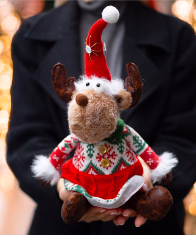 Christmas reindeer, white-red sweater (L = 36 cm)