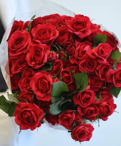 Roses prefer clean cool water and regular stem trimming. Before placing them in a vase, trim the stems, remove lower leaves, and keep the bouquet in a cool place. If the outer petals look slightly dry or darkened, they can be gently removed as they are protective guard petals.