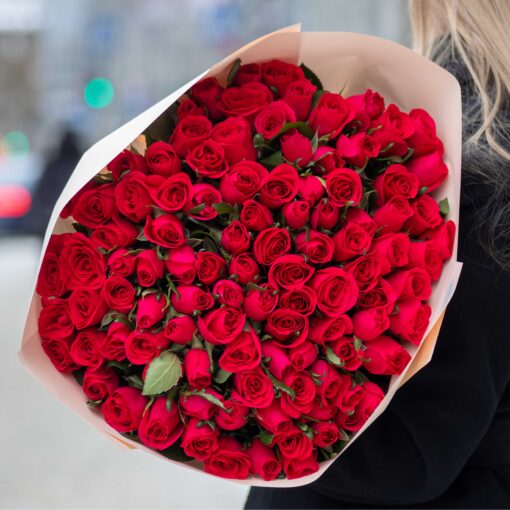 A luxurious classic bouquet of 101 fresh roses, 35–50 cm in height. Each bouquet includes a complimentary greeting card and a flower food sachet to extend the life of the roses. The recommended number of flower food sachets to extend the bouquet’s longevity is 4 pieces.