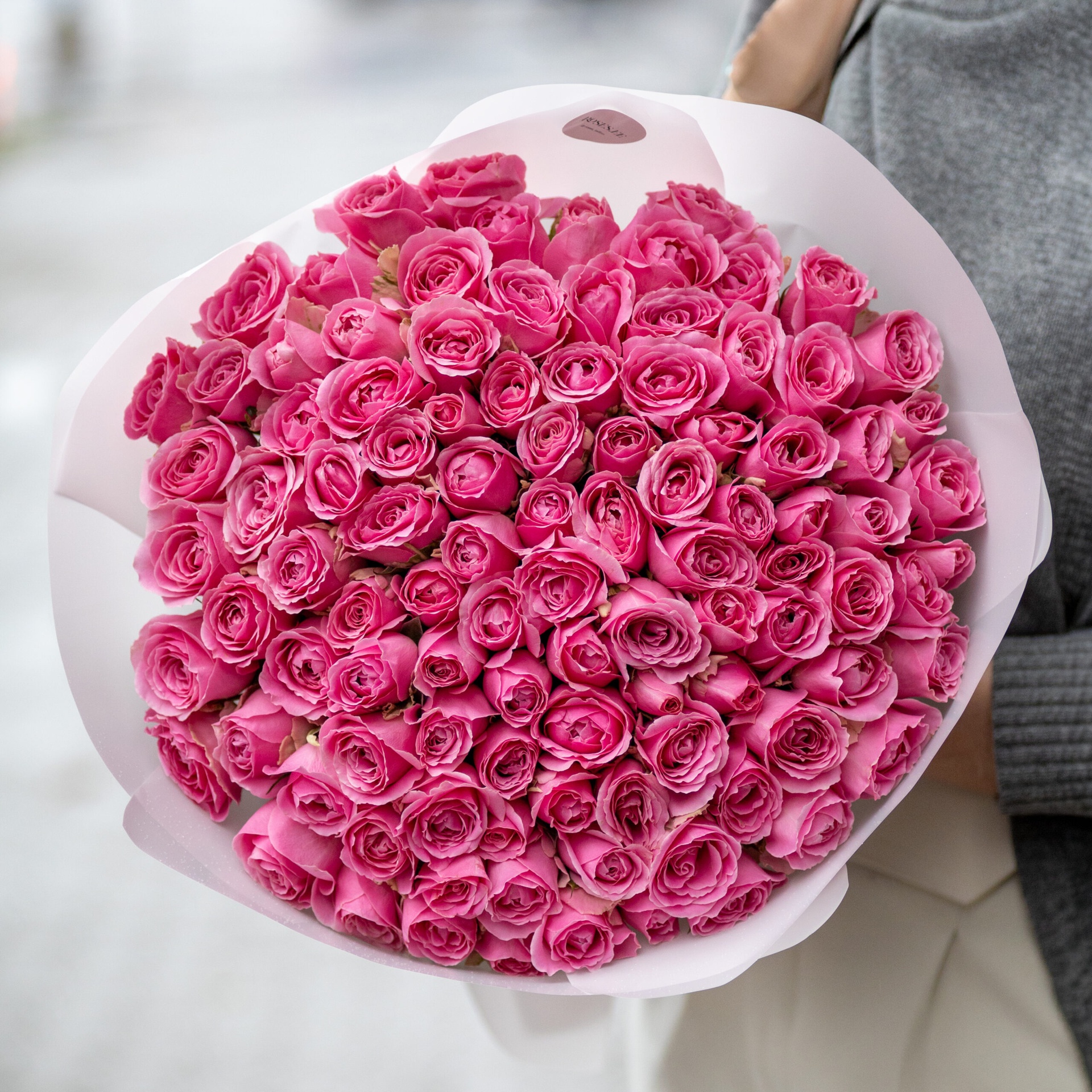 A luxurious classic bouquet of 101 roses with a height of 35–50 cm.