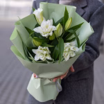 The photo is for illustrative purposes. The bouquet is wrapped in kraft paper for pickup and in transparent film for delivery. If you would like a different wrapping, please select festive packaging when placing your order.