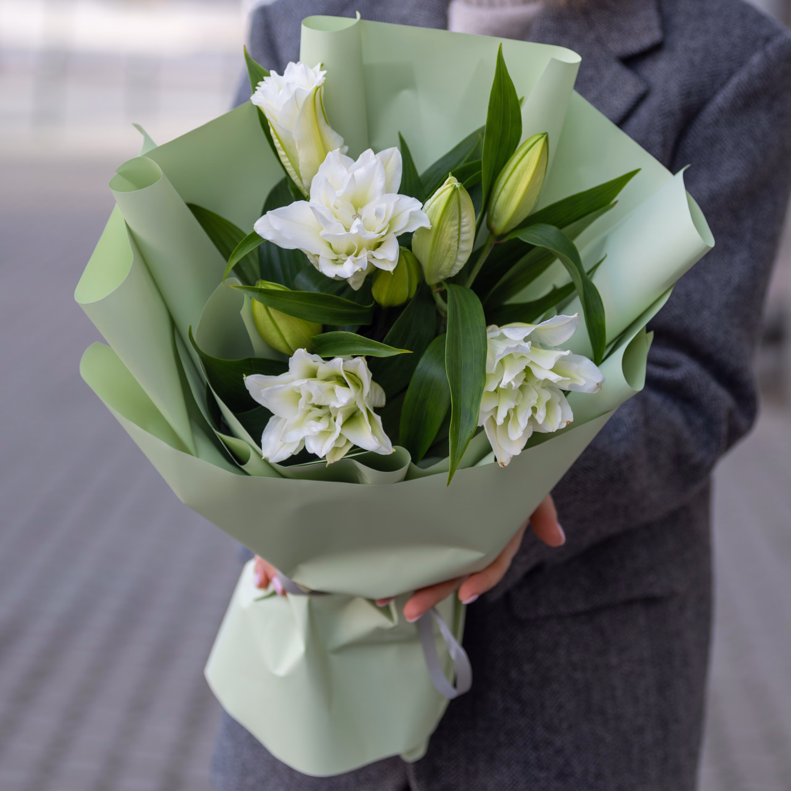 An elegant bouquet of 3 lilies in stylish wrapping. A delicate and expressive gift for any occasion.