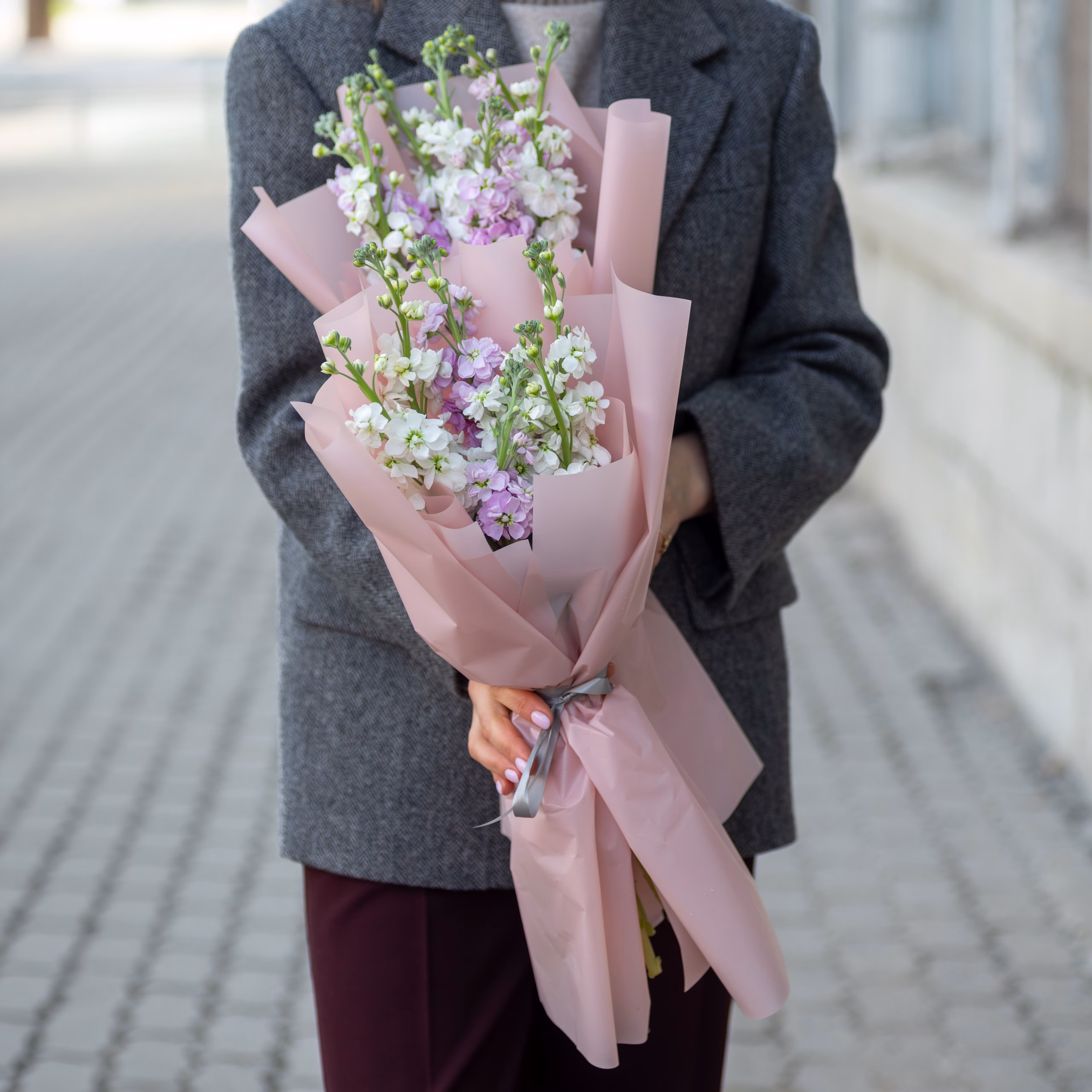 A fragrant bouquet of 7 mixed matthiolas in stylish wrapping. A delicate and elegant gift for any occasion.