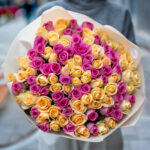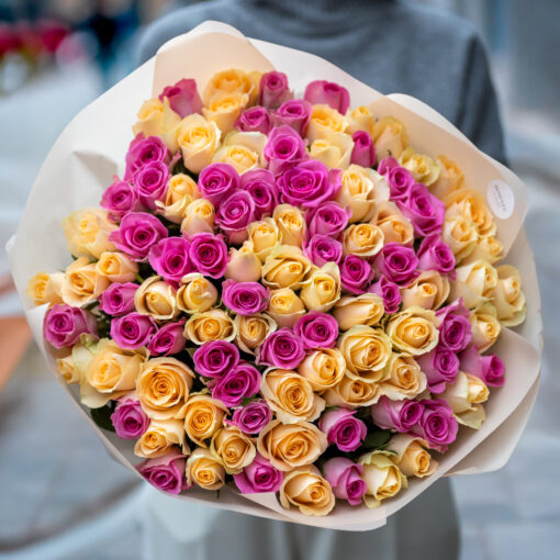 A deluxe classic bouquet of 101 pink and peach roses, height: 40-50 cm.
