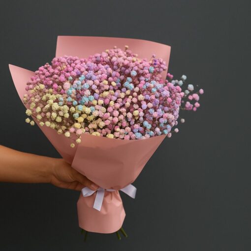 Букет Гипсофила (цветной) + топпер мишка (SP)