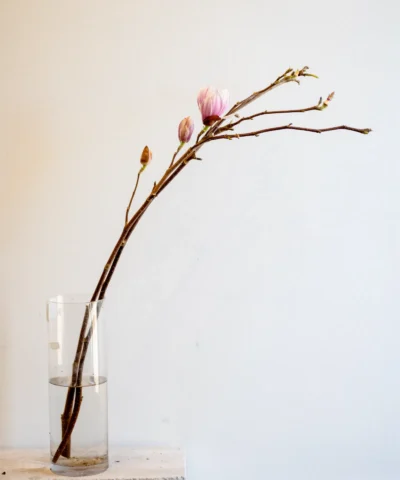 Peonies love cool conditions and plenty of water. They often arrive semi-closed and continue opening at home. To help peonies last longer, trim the stems, remove the lower leaves, and check the water level in the vase every day.