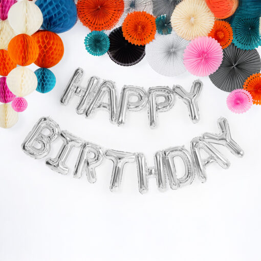 Foil Balloon Happy Birthday, 340x35cm, silver