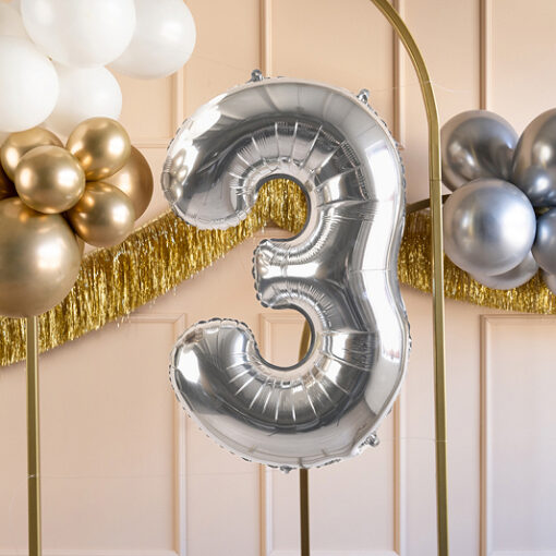 Foil Balloon Number ”3”, 72cm, silver