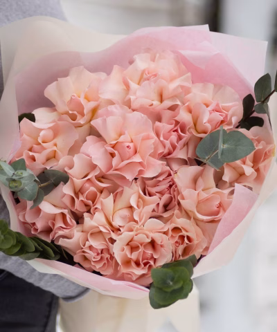 The photo is for illustrative purposes. The bouquet is wrapped in kraft paper for pickup and in transparent film for delivery. If you would like a different wrapping, please select festive packaging when placing your order.
