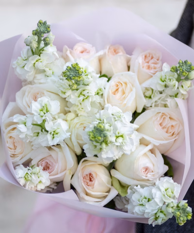 The photo is for illustrative purposes. The bouquet is wrapped in kraft paper for pickup and in transparent film for delivery. If you would like a different wrapping, please select festive packaging when placing your order.