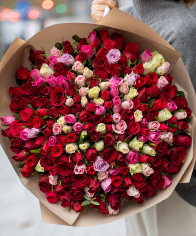 The rose mix gives the bouquet a lush and vibrant look — perfect for weddings, anniversaries, romantic gestures, or any special occasion.