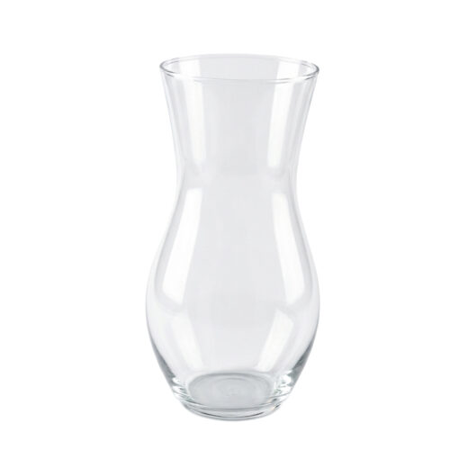 Transparent glass vase with a graceful neck and round base. The vase is 24 cm high and suitable for small bouquets or single flowers. Its simple design fits any interior and adds a refined look to a table or cabinet.