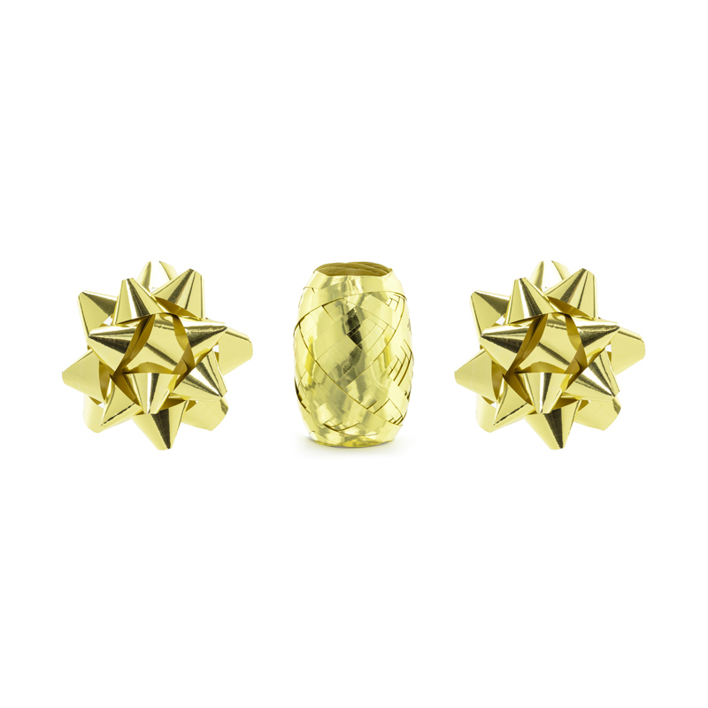 Set of ribbons and rosettes, gold: 1pkt/3pc.