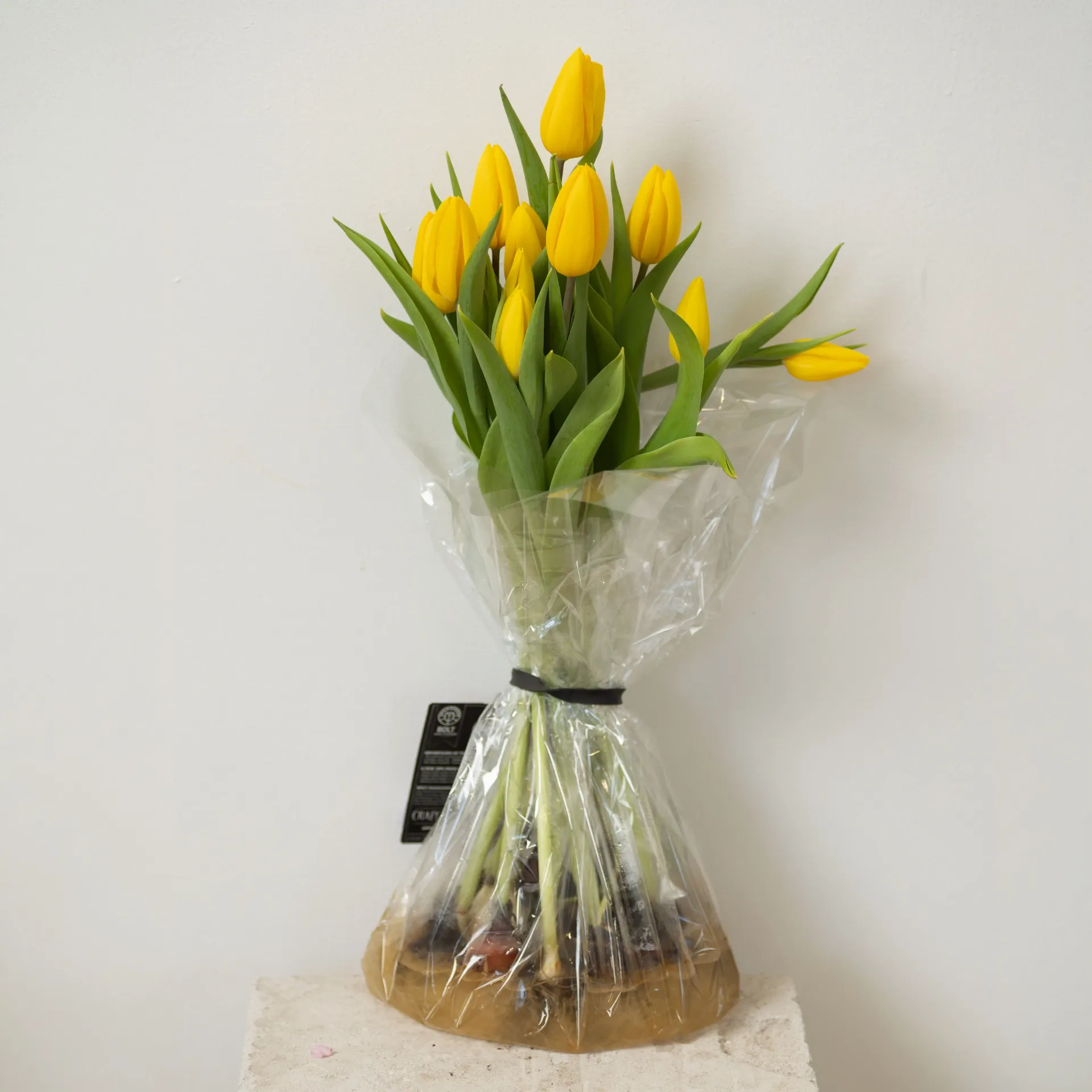 Tulips continue growing after being cut, so they may stretch and bend slightly. This is natural. They do best in cool water and a cool room. The water level should not be too high and it should be refreshed regularly.