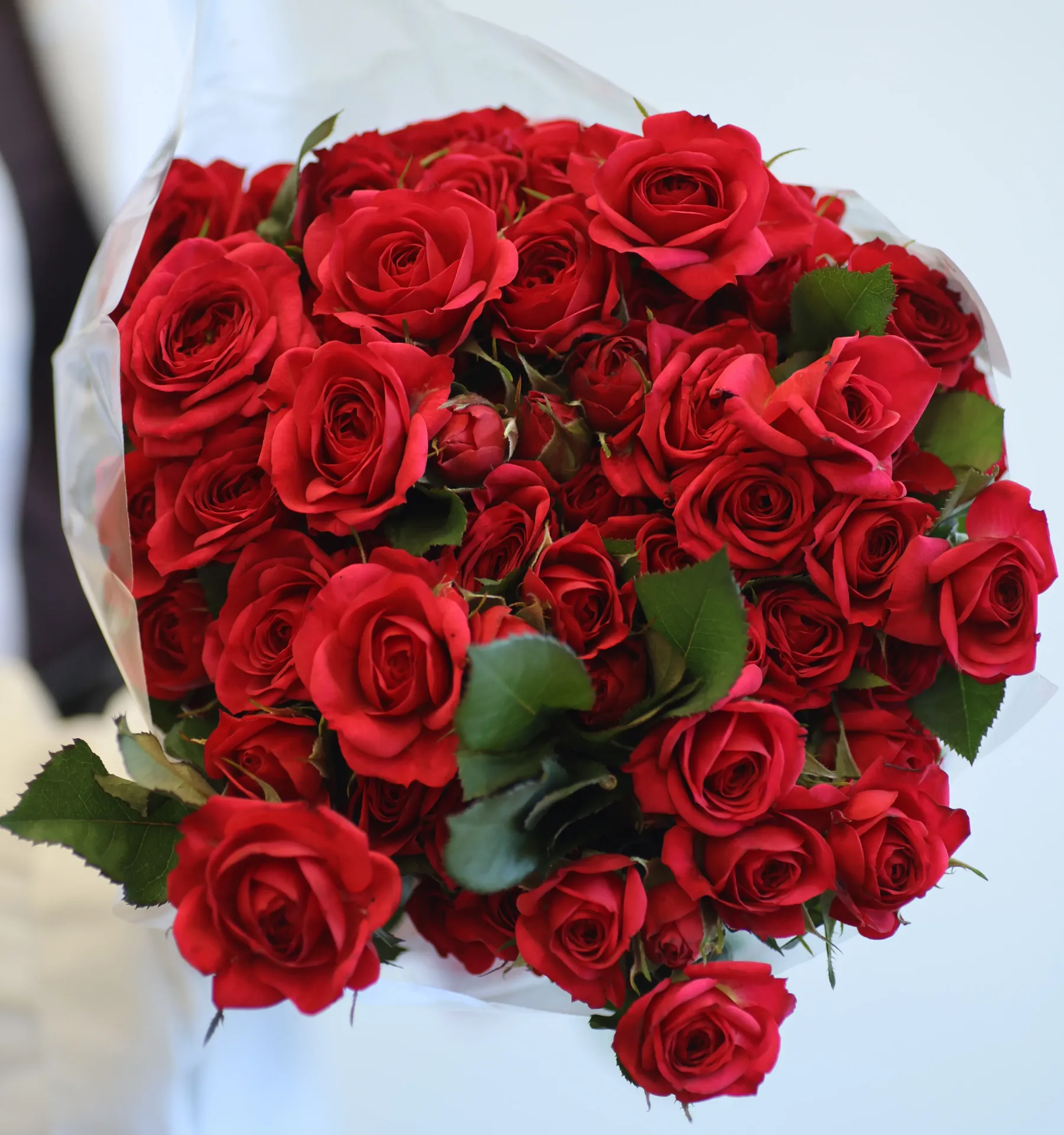 Roses prefer clean cool water and regular stem trimming. Before placing them in a vase, trim the stems, remove lower leaves, and keep the bouquet in a cool place. If the outer petals look slightly dry or darkened, they can be gently removed as they are protective guard petals.