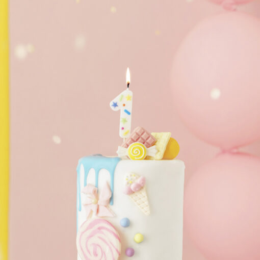 Birthday Candle Number ‘1’, white confetti, 5.5cm