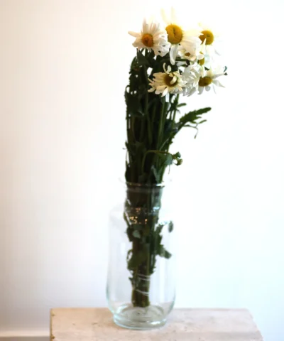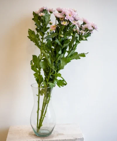Chrysanthemums are known as very long-lasting flowers, but they also prefer clean water and a fresh stem cut. Before placing them in a vase, remove the lower leaves and trim the stems slightly. In a cool room, chrysanthemums can remain decorative for a long time.