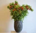 Conifer greenery in bouquets and seasonal arrangements stays fresh longer in a cool room. If the greenery is in a vase, the stems should have access to water. If it is used in a box, basket, or floral foam arrangement, the base should be moistened regularly.