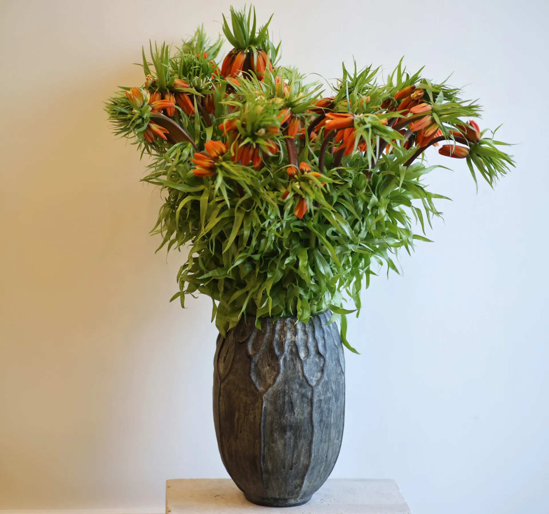 Peonies love cool conditions and plenty of water. They often arrive semi-closed and continue opening at home. To help peonies last longer, trim the stems, remove the lower leaves, and check the water level in the vase every day.