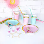 Disposable tableware – a convenient and practical solution for party tables and easy cleanup.