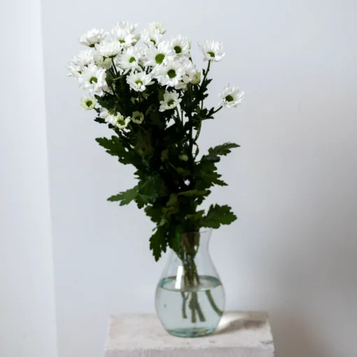 Chrysanthemums are known as very long-lasting flowers, but they also prefer clean water and a fresh stem cut. Before placing them in a vase, remove the lower leaves and trim the stems slightly. In a cool room, chrysanthemums can remain decorative for a long time.