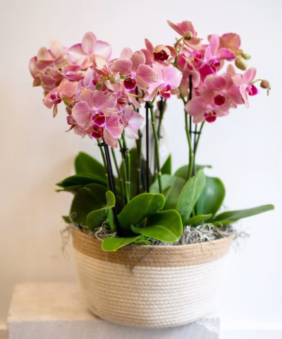 Phalaenopsis mix 12 Spike Reed Basket