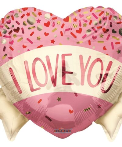 Гелиевый фольгированный шар Heart Love you Banner & Sprinkles (18 inch) (14/02)
