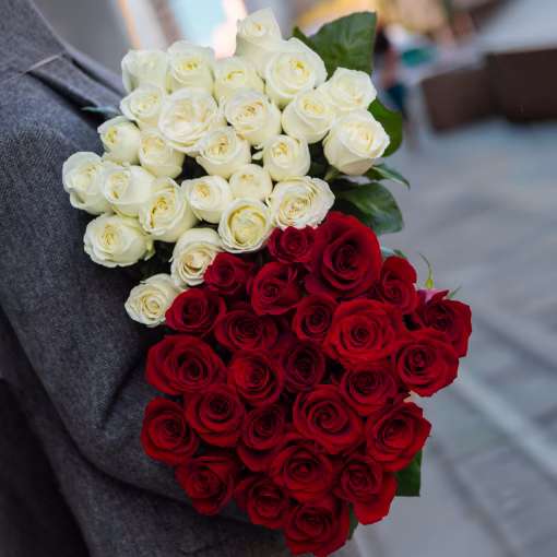 Специальное предложение: при покупке 25 красных эквадорских роз длиной 70 см вы получаете еще 25 белых эквадорских роз 70 см бесплатно.