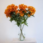 Хризантемы считаются очень стойкими цветами, но они тоже любят чистую воду и свежий срез. Перед постановкой в вазу удалите нижние листья и немного подрежьте стебли. В прохладном помещении хризантемы могут долго сохранять декоративность.