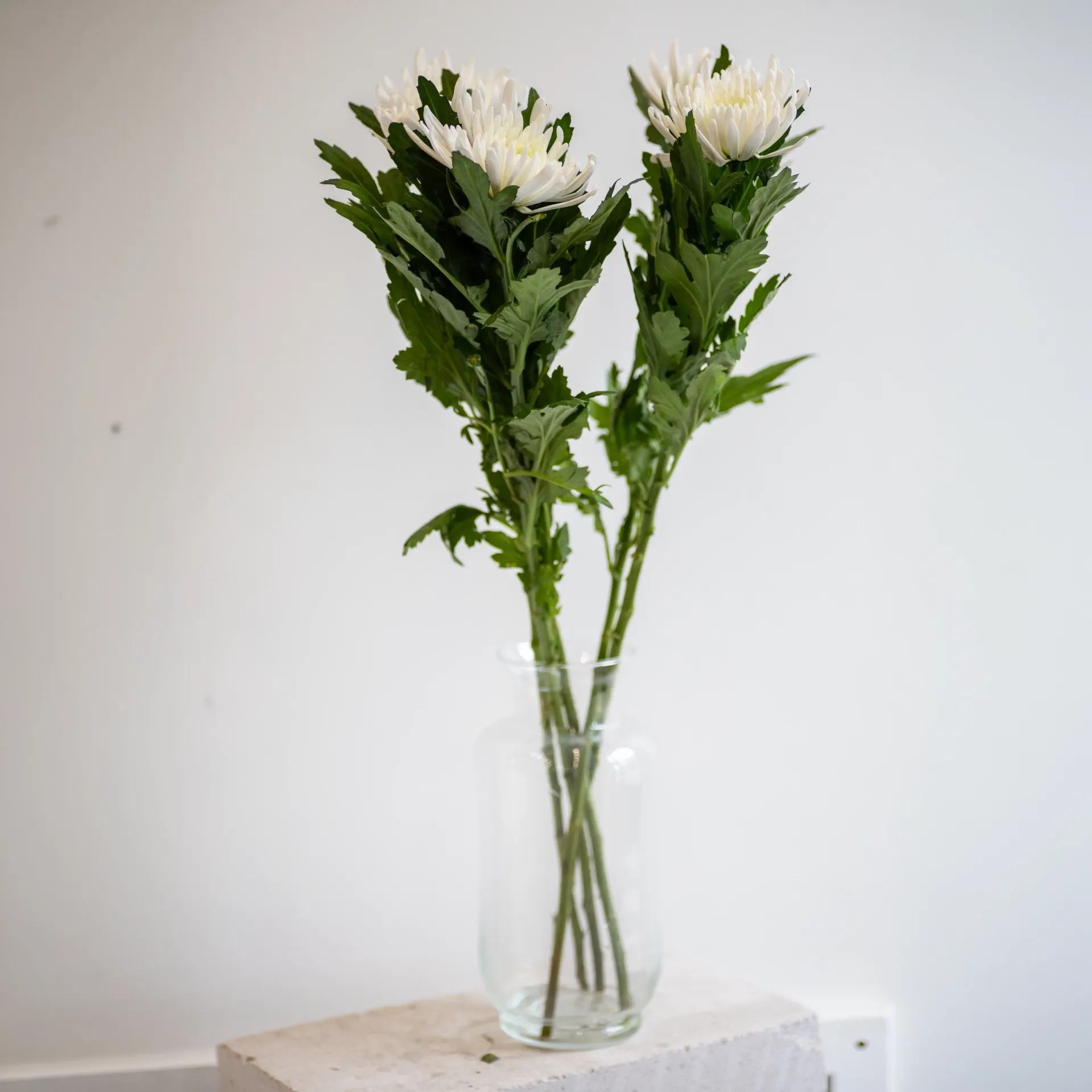 Хризантемы считаются очень стойкими цветами, но они тоже любят чистую воду и свежий срез. Перед постановкой в вазу удалите нижние листья и немного подрежьте стебли. В прохладном помещении хризантемы могут долго сохранять декоративность.