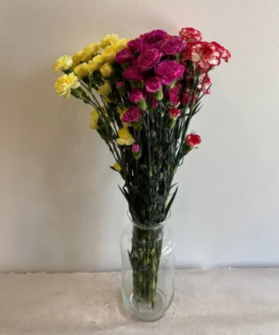 Гвоздики — стойкие и неприхотливые цветы, которым подходит стандартный уход: чистая вода, свежий срез и прохладное место. Они хорошо сохраняют форму, если вода остается чистой и букет не перегревается.