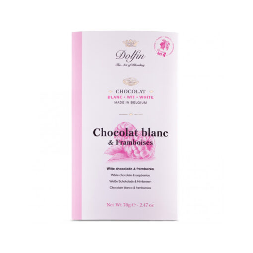 Нежный белый шоколад с кисло-сладким вкусом сочной малины, создающий гармоничное и непреодолимое сочетание вкусов. Премиальный бельгийский шоколад с натуральными ингредиентами для утончённого дегустационного опыта.