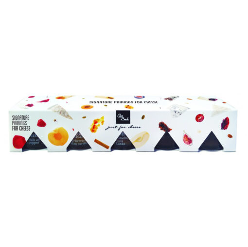 Набор из пяти натуральных сладких соусов, разработанных для идеального сочетания со всеми видами сыра. Включает Золотое яблоко, Малину, Чёрные инжиры, Персики с абрикосами и Чёрный виноград