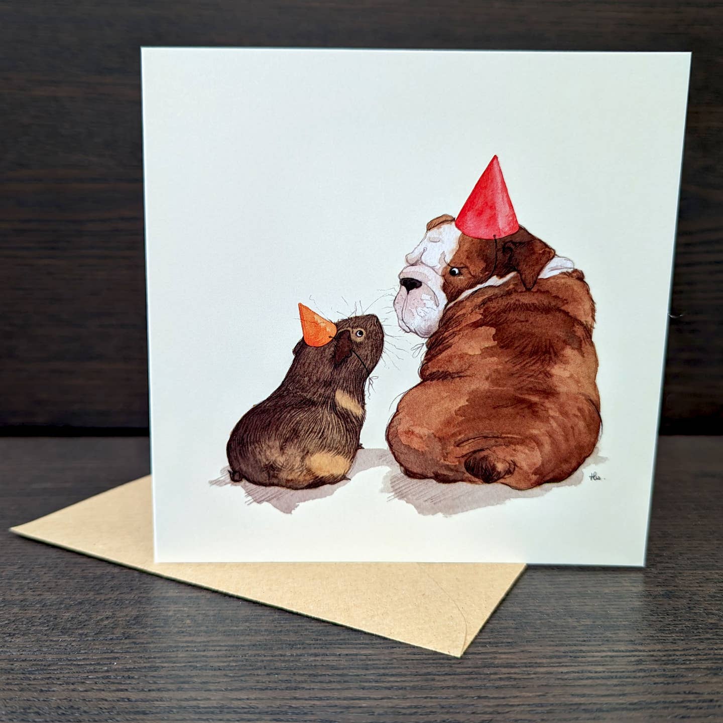 Морская свинка и бульдог – открытка ко дню рождения, милые животные