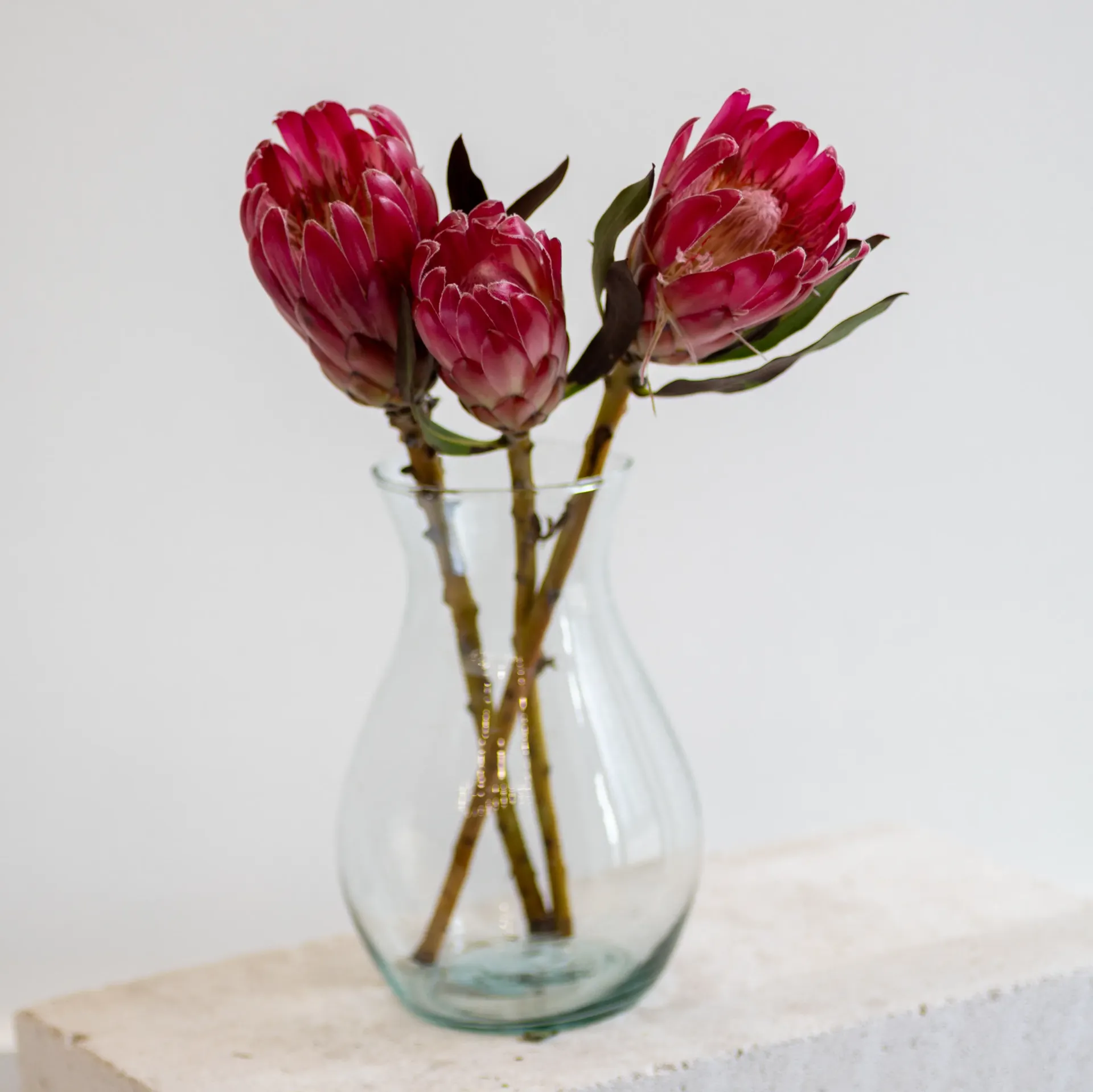 Сразу после получения букета подготовьте чистую вазу с прохладной свежей водой. Подрежьте стебли на 1–2 см, удалите листья ниже уровня воды и поставьте цветы в вазу как можно быстрее. Меняйте воду каждые 1–2 дня и при каждой смене слегка обновляйте срез.