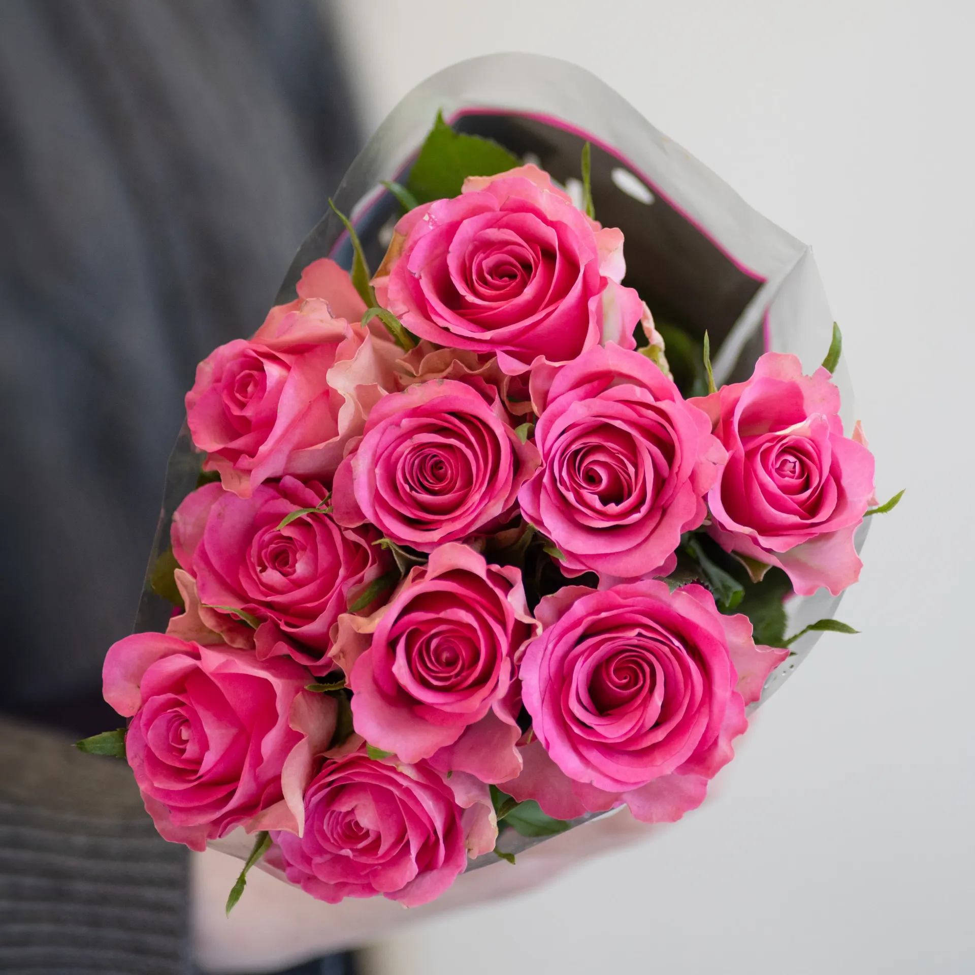 Розы любят чистую прохладную воду и регулярное обновление среза. Перед постановкой в вазу подрежьте стебли, уберите нижние листья и поставьте букет в прохладное место. Внешние лепестки, если они слегка подсохли или потемнели, можно аккуратно снять — это защитные лепестки бутона.