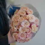 Фотография носит иллюстративный характер. При самовывозе букет упаковывается в крафтовую бумагу, а при доставке — в прозрачную пленку. Если вы хотите получить букет в другой упаковке, пожалуйста, выберите праздничную упаковку при оформлении заказа.