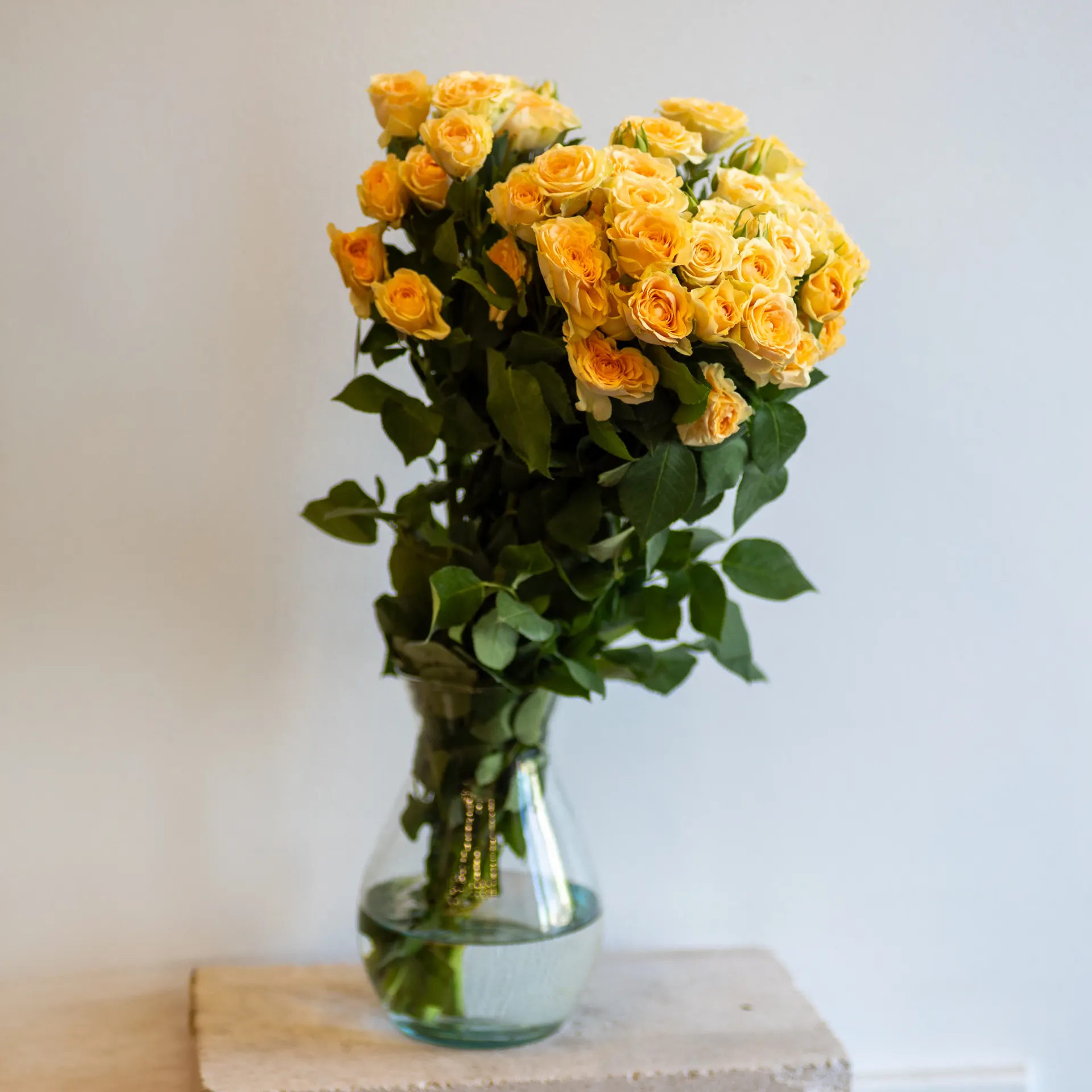 Кустовые розы требуют такого же ухода, как и классические розы, но из-за нескольких бутонов на одном стебле особенно важно следить за чистотой воды и аккуратным видом ветки. Если один маленький бутон начал увядать, его лучше удалить, чтобы композиция дольше выглядела свежей.