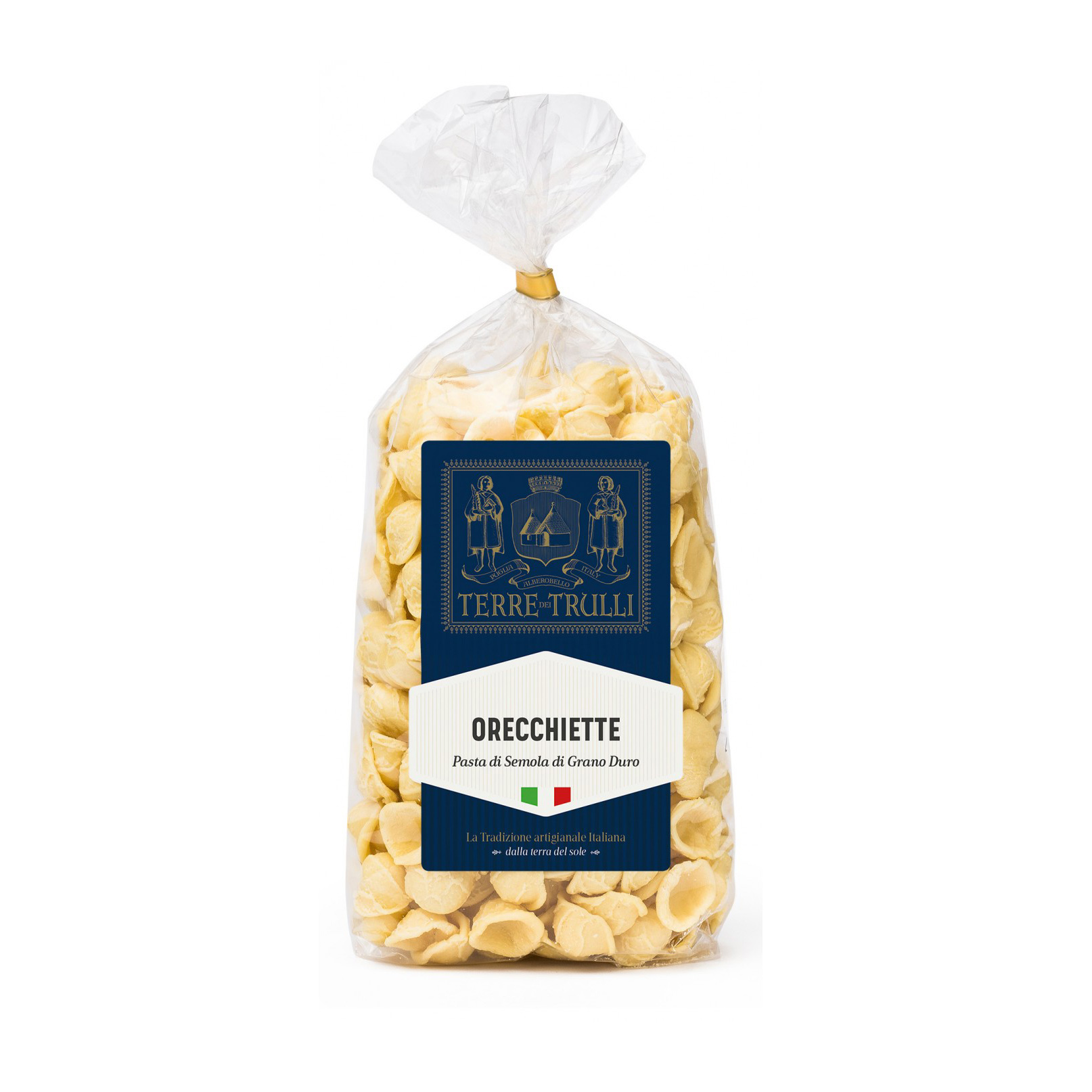 Орекьетте — уникальная паста из южной Италии, региона Апулия, с формой «маленьких ушек». Мягкая в центре и чуть плотнее по краям, она идеально подходит для овощных соусов, мелких кусочков мяса или классического томатного соуса.